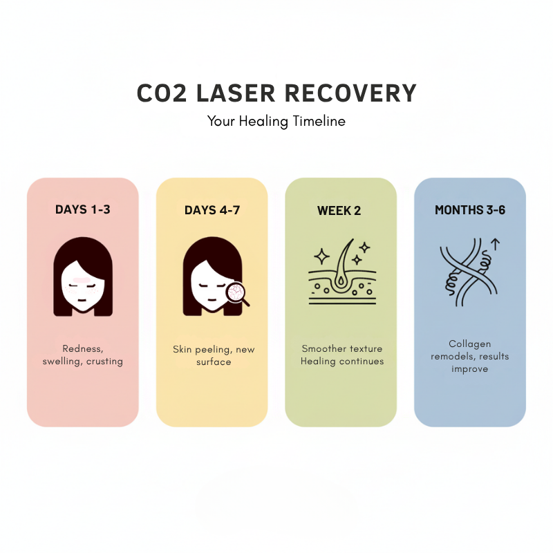 After a CO2 fractional laser session, your skin will go through several healing stages: