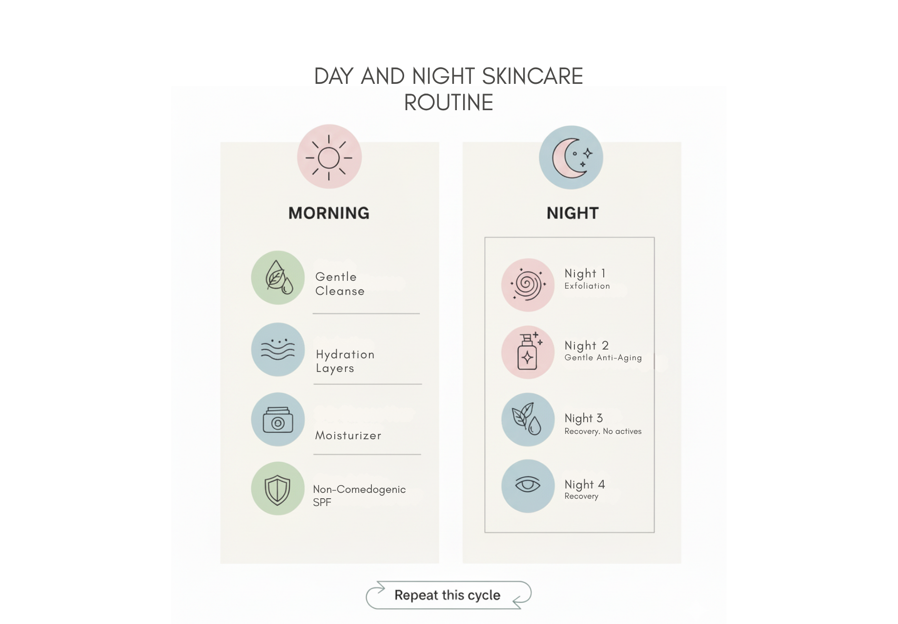 PM Routine: Focus on Repair and Skin Cycling.