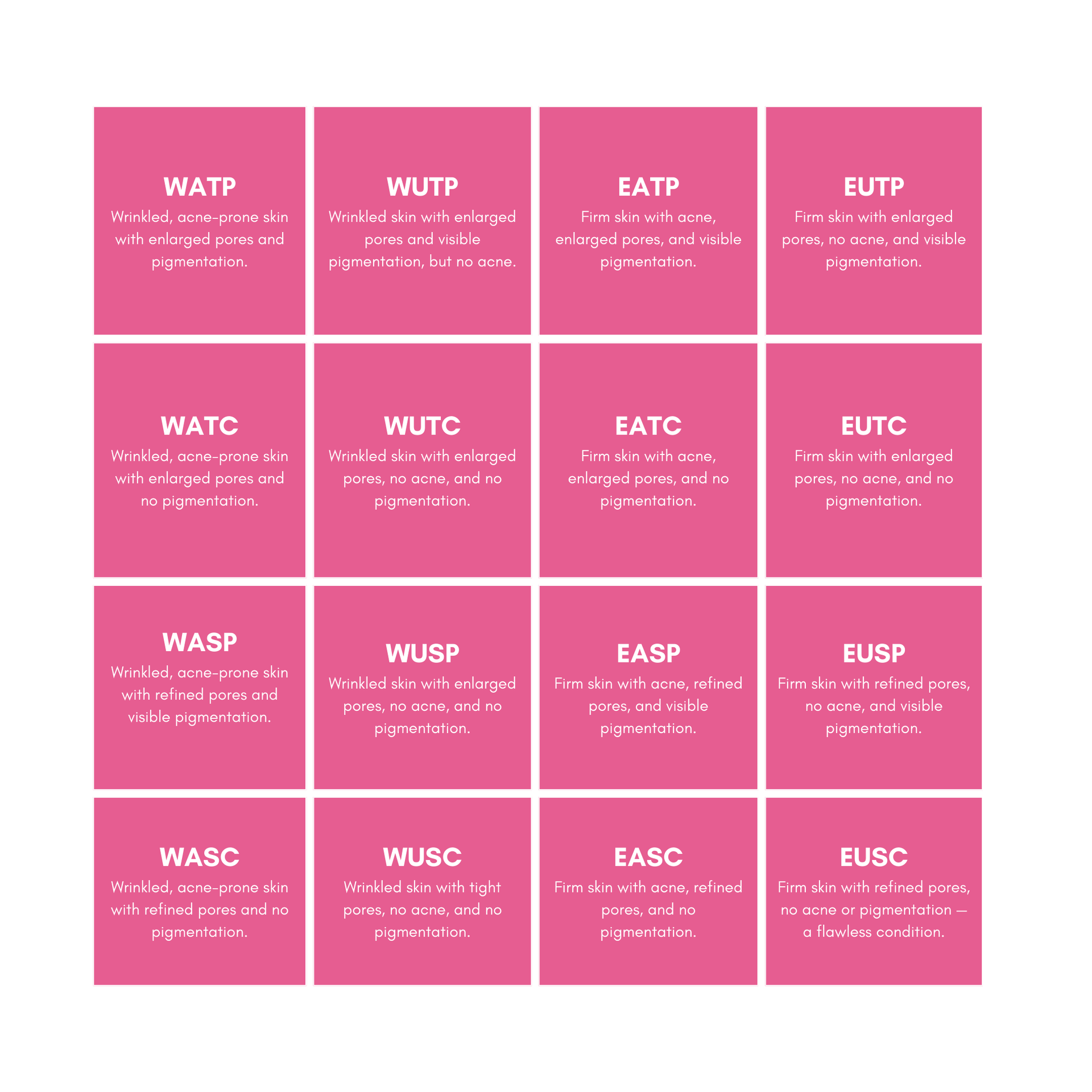 Each code is a combination of letters that represents your skin's unique tendencies.